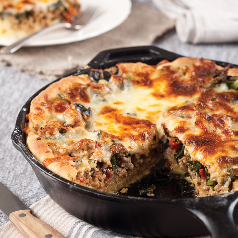 Deep Dish Pork and Collard Green Pizza
