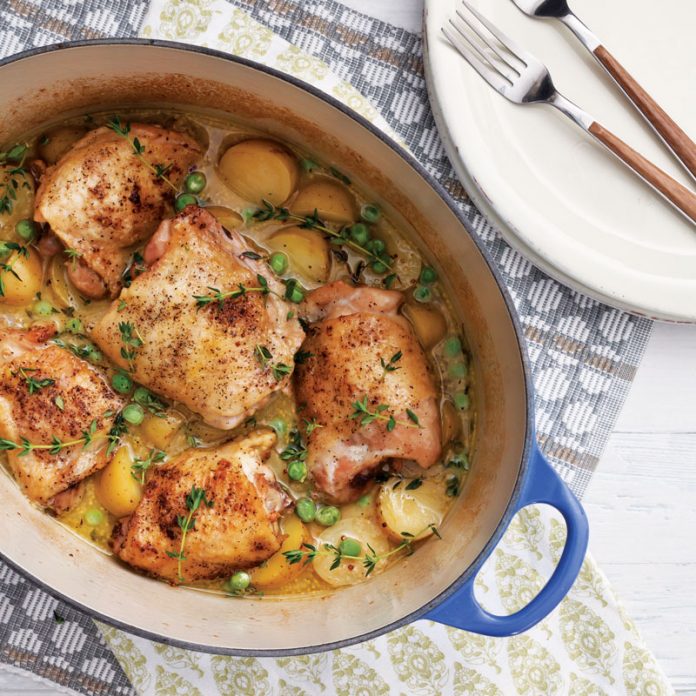 Braised Chicken with White Wine and Spring Peas