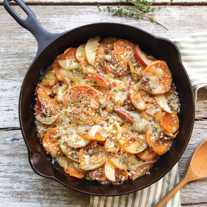 Creamy and flavored with fresh thyme, this delicious side dish gets additional sweetness and texture from crisp apples.