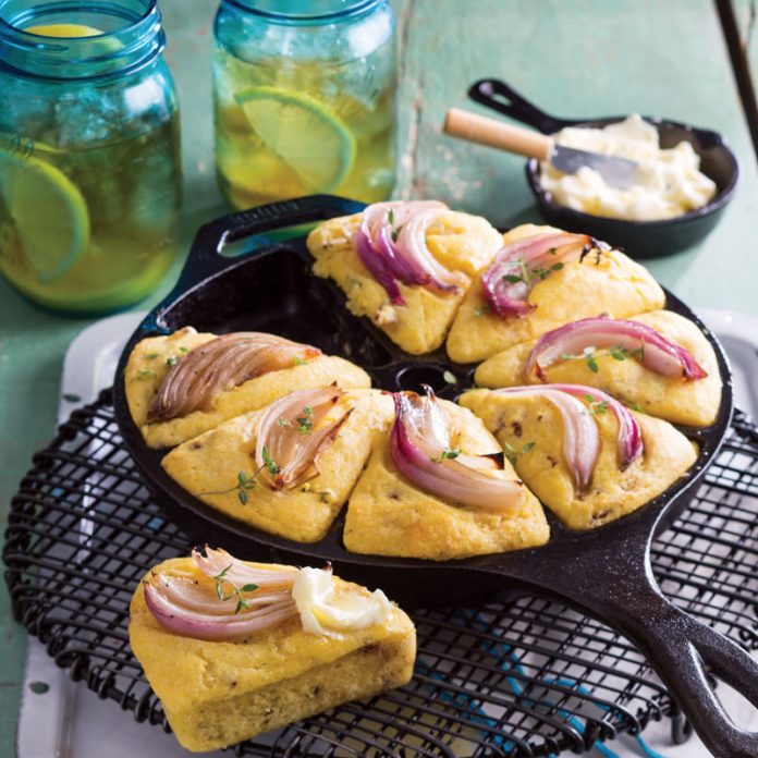 Topped with onion and thyme, these wedges are a fancy twist on cornbread.
