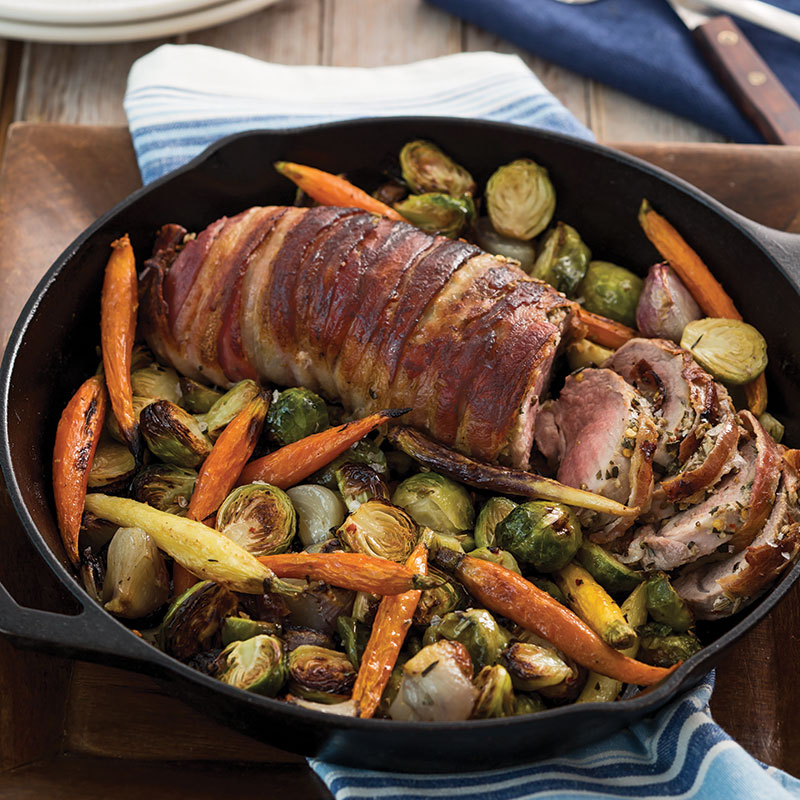 Bacon-Wrapped Pork with Roasted Vegetables