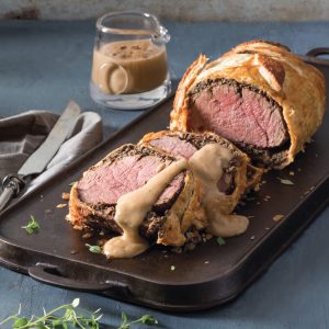 Beef Wellington with Whiskey Gravy