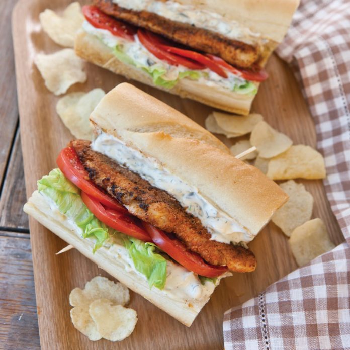 - Spread Spicy-Sweet Tartar Sauce over cut sides of bread. Top with fish, lettuce, and tomato. Serve with potato chips.