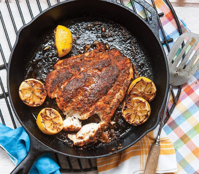 Squeeze a charred lemon half over each serving of this spicy, butter-seared fish for the best flavor.