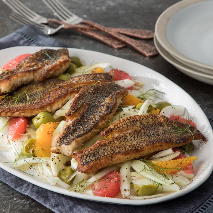 Butter Seared Black Sea Bass with Shaved Fennel-Citrus Salad