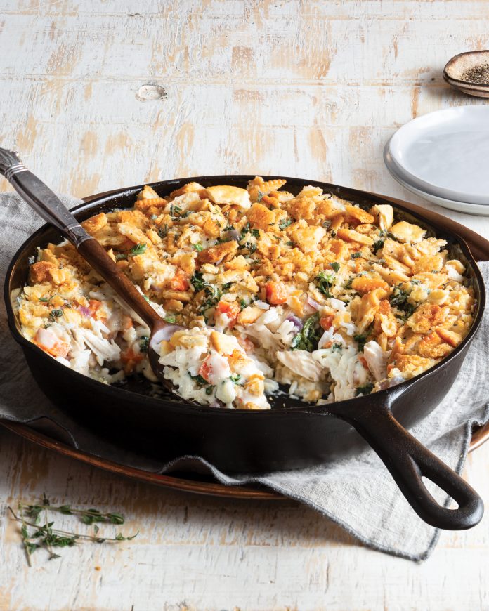 With rotisserie chicken and a quick, stir-together cream sauce, you’ll have this all-in-one supper bubbling away in the oven in no time.
