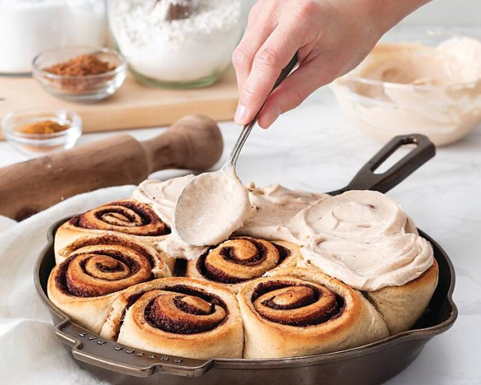 - Spread Cinnamon-Cream Cheese Frosting onto warm rolls. Garnish with cinnamon, if desired. Serve warm.