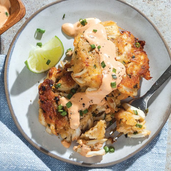 Served with a smoky, slightly spicy sauce, these pan-fried cakes let the sweet crabmeat shine.