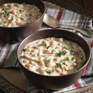 This deliciously comforting soup, flecked with green chiles and cumin, is equal parts luxurious and exotic. You can use 3 cups shredded cooked turkey or chicken in place of cooking the chicken thighs.