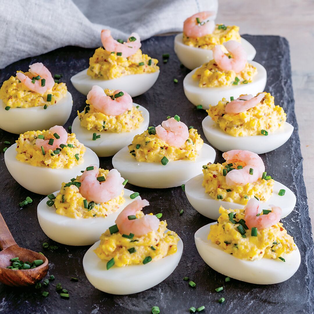 Classic deviled eggs are made even tastier with the help of sweet shrimp, tangy hot sauce, and Creole flair.