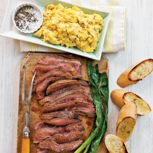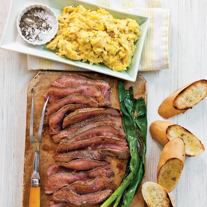 The king of hearty breakfast dishes gets an upgrade with tender flat iron steak.