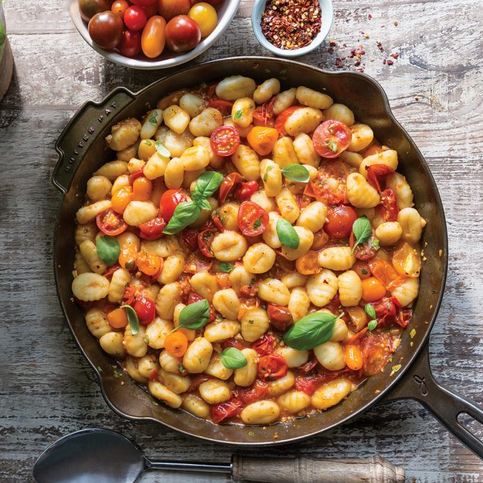 Store-bought gnocchi makes for an easy weeknight dinner that’s packed full of fresh tomato sauce.