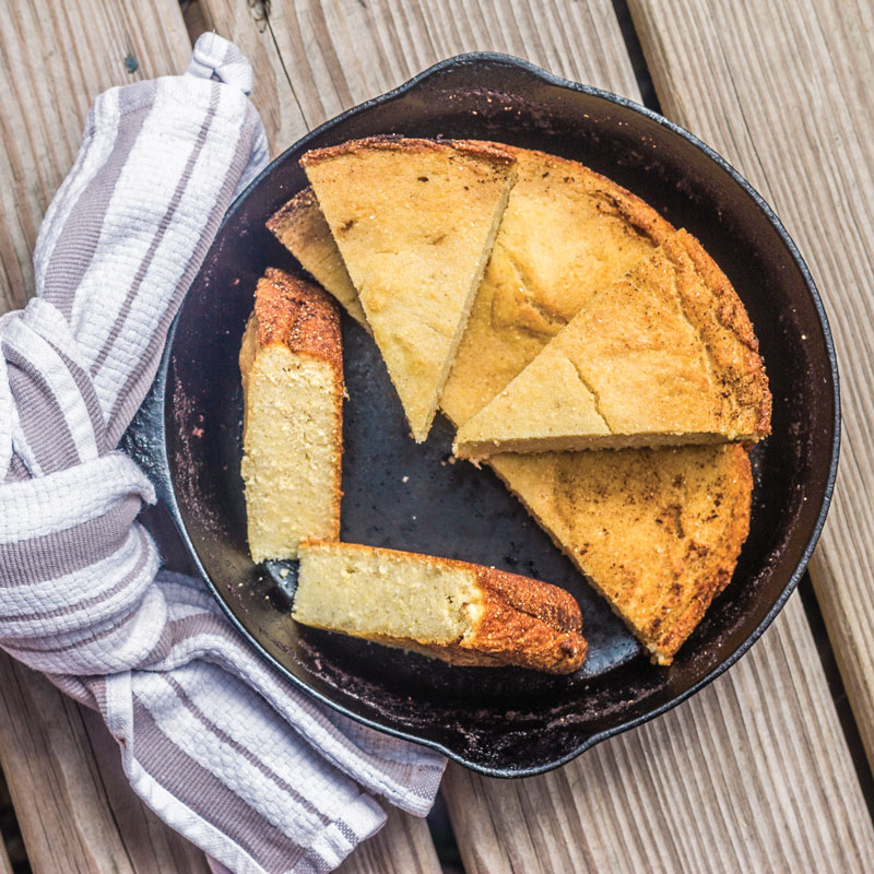Eggbread, known by most folks today as Southern buttermilk cornbread, was only made in preparation for special occasions. Eggbread was too fancy and required too many ingredients for everyday eating, despite the fact that the ingredient list was short and contained now-common items: cornmeal, self-rising flour, eggs, buttermilk, and some kind of fat. The prize ingredient requiring rationing was buttermilk. My grandparents traveled miles in the country to purchase buttermilk from a particular farmer because his spectacular buttermilk contained flecks of butter. Buttermilk so fine was saved for biscuits, and only those special occasions that called for eggbread. I loved to hover in the kitchen while Granny prepared her eggbread. She’d throw all the ingredients in a mixing bowl, using only her hands to measure the dry ingredients and an ordinary coffee mug for wet ingredients. She heated up her cast-iron skillet to just the right amount of sizzle before pouring in the batter.