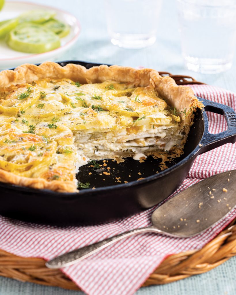 Delightfully tart and tangy green tomatoes are an unexpected twist in this otherwise traditional version of tomato pie.