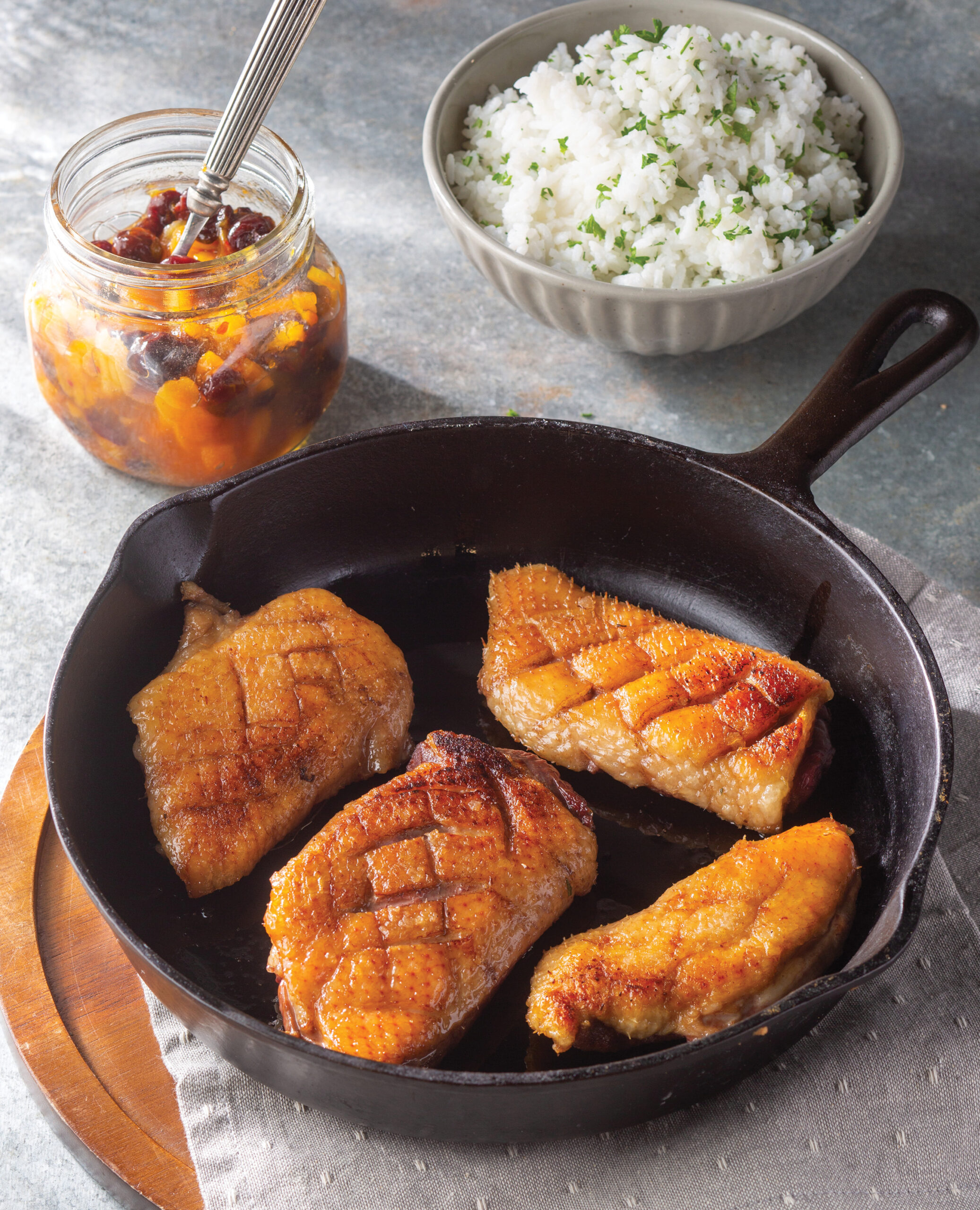Extra-crispy skin is the key to achieving a delicious duck breast. Our Lacquered Duck Breast with Dried Fruit Compote shows how perfectly dried fruit complements this game meat.