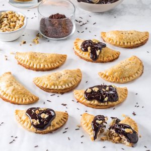 Our version of this classic Kentucky pie is miniaturized and utilizes the convenience of refrigerated pie dough while still packing a flavor punch with bourbon and dark chocolate.