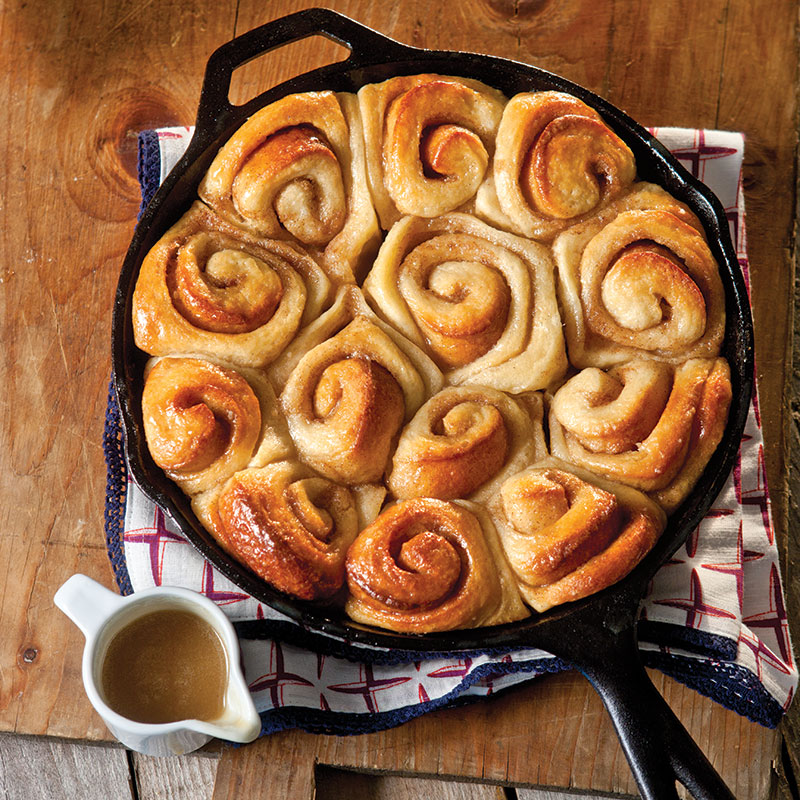 9. Bake cinnamon rolls until lightly browned, 25 to 30 minutes. Drizzle Cinnamon Roll Glaze over tops of warm rolls.