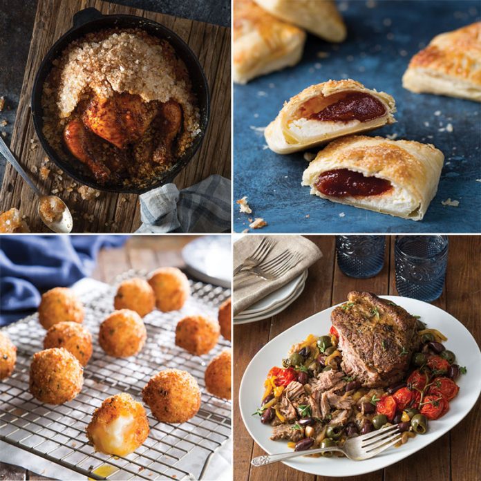To make it through this season of shivering, we create our own warmth and coziness through the foods we put on our tables. We haul out our Dutch ovens to braise and roast whole birds and generous, family-feeding slabs of beef and pork. We call forth our skillets to simmer and caramelize our favorite creamy, crispy, and hearty side dishes. And we round it all out with glorious desserts hot from the oven—treats we can barely let cool before digging in with spoons held at the ready.