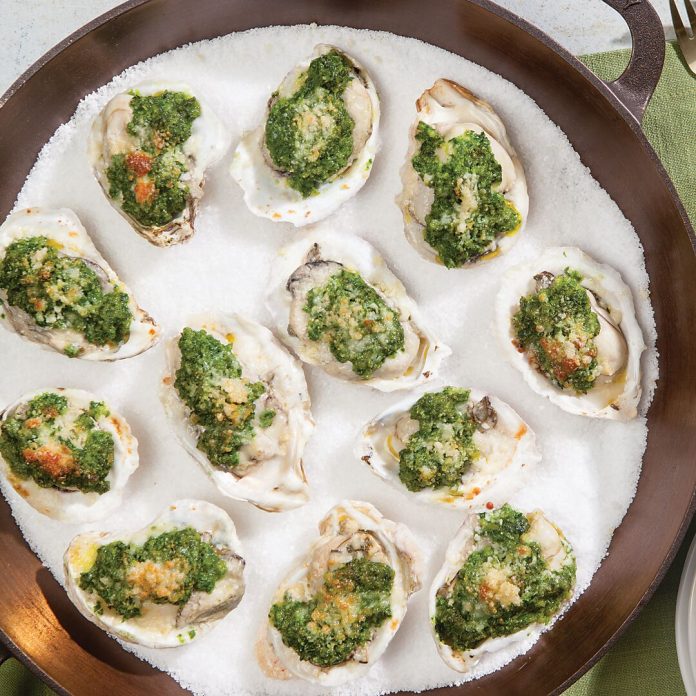 The rich mixture of salty cheese, peppery greens, and crunchy bread crumbs that crowns these briny bivalves is the epitome of easy sophistication.