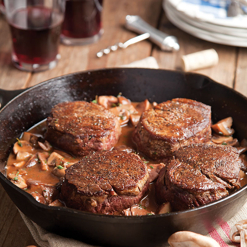 - In a 12-inch cast-iron skillet, heat oil over medium-high heat. When skillet begins to smoke, add steaks. Cook, working in batches, until browned, 3 to 4 minutes per side. Remove from skillet; set aside.