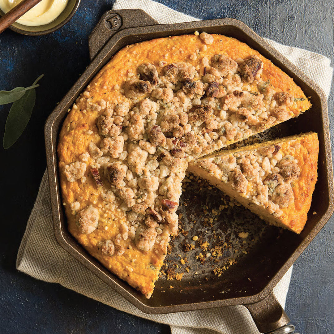 This slightly sweet, sage-filled cornbread gets its vibrant color from puréed pumpkin.
