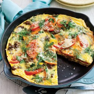 Tender sweet potato and hearty sausage make every bite of this skillet frittata delightful.
