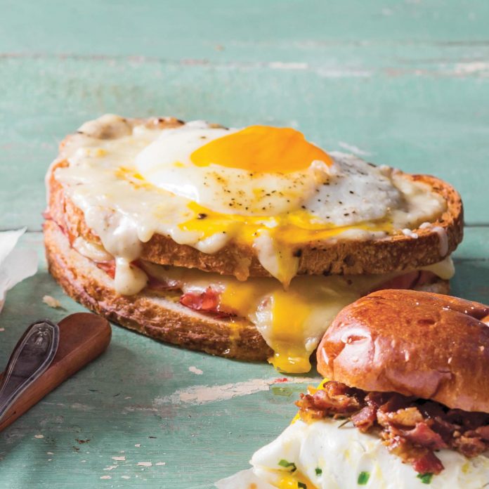 Fried eggs, creamy fontina cheese, and rich fig preserves up the ante on our Southern spin on the classic French croque madame.