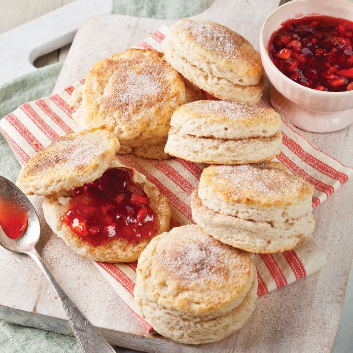 Layered with cinnamon sugar, these biscuits remind us of a snickerdoodle cookie.