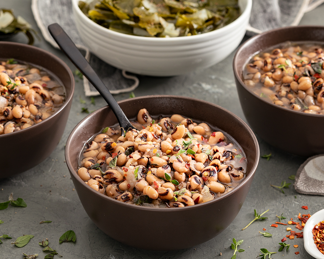 Creamy, flavorful, and nutritious, these Southern-Style Vegetarian Black-Eyed Peas featuring Camellia Brand Black Eyed Peas are best served alongside cornbread and collard greens as part of a well-rounded New Year’s Feast!