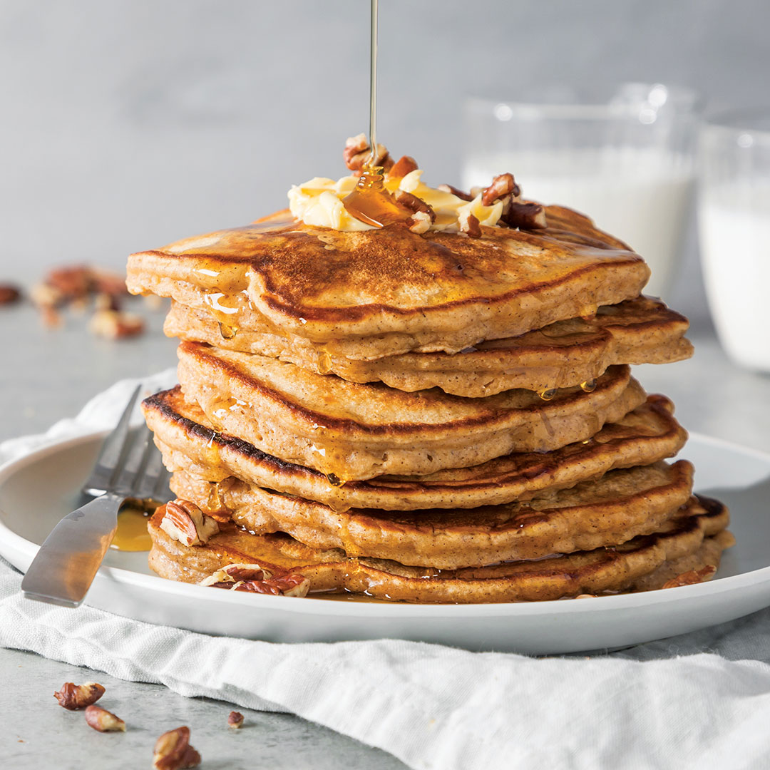 A little sweet, a little crunchy, and a little spicy, these filling flapjacks are perfect for a fall breakfast.