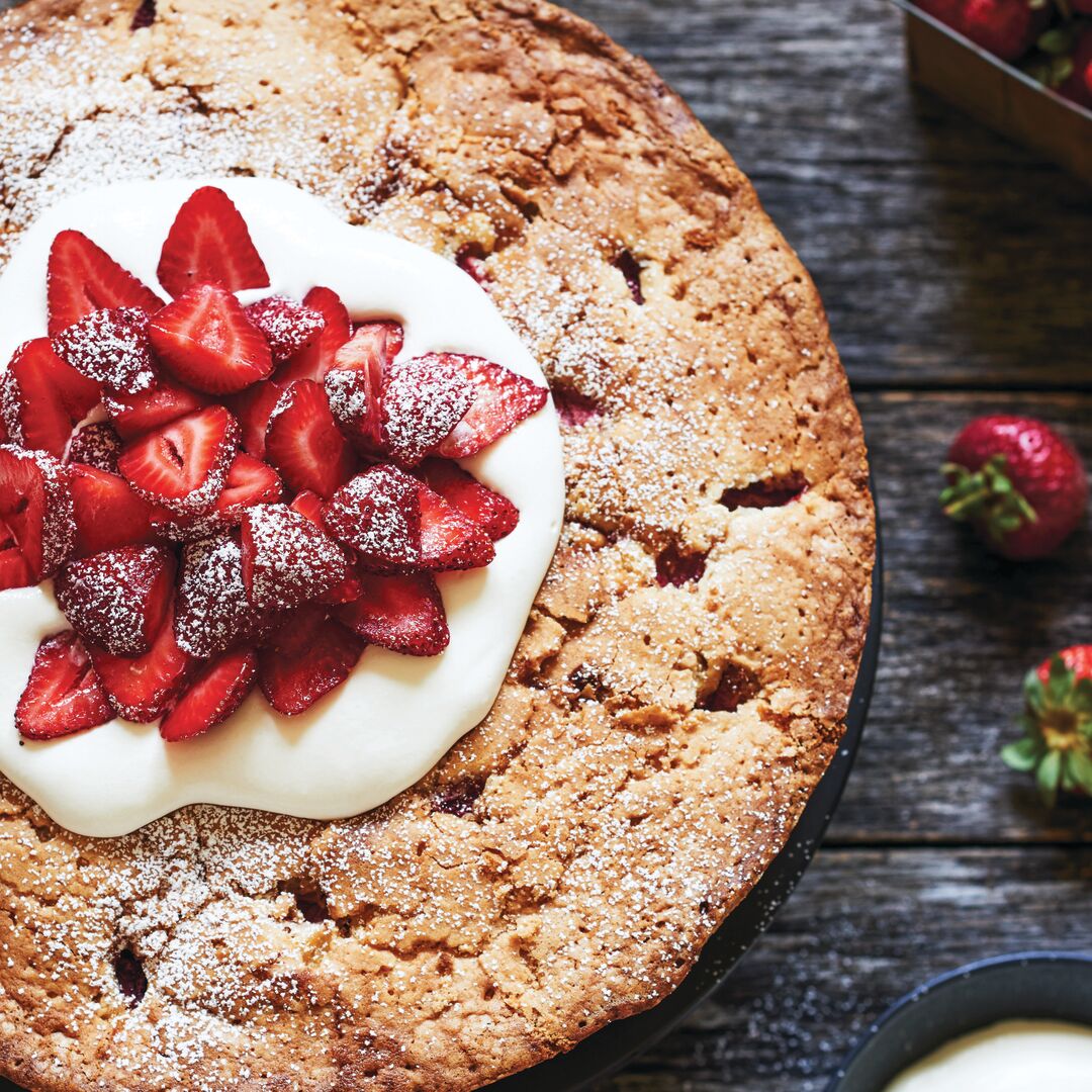 Pound cakes bake so beautifully in the iron skillet. And it’s amazing how the simple addition of chopped strawberries turns my favorite pound cake into the perfect cake for springtime gatherings. If you don’t have strawberries, you can always add blueberries or raspberries. And if you want to easily unmold a skillet pound cake— versus slice and serve right from the pan—run a knife around the pan edges as soon as the cake comes out of the oven. And for the easiest process of all, line the bottom of the skillet with a round of parchment paper.