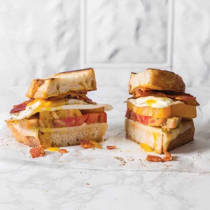 It’s hard to beat a sandwich made with fresh tomatoes when they’re in peak season; juicy slices paired with perfectly crisp bacon and a runny egg yolk amplify it even more.