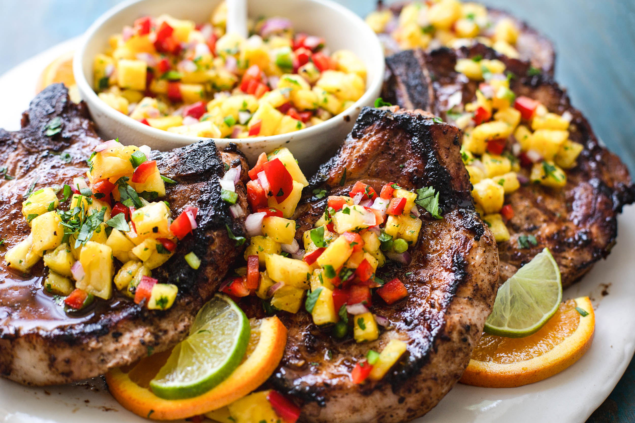 Jerk-Inspired Pork Chops with Pineapple Salsa